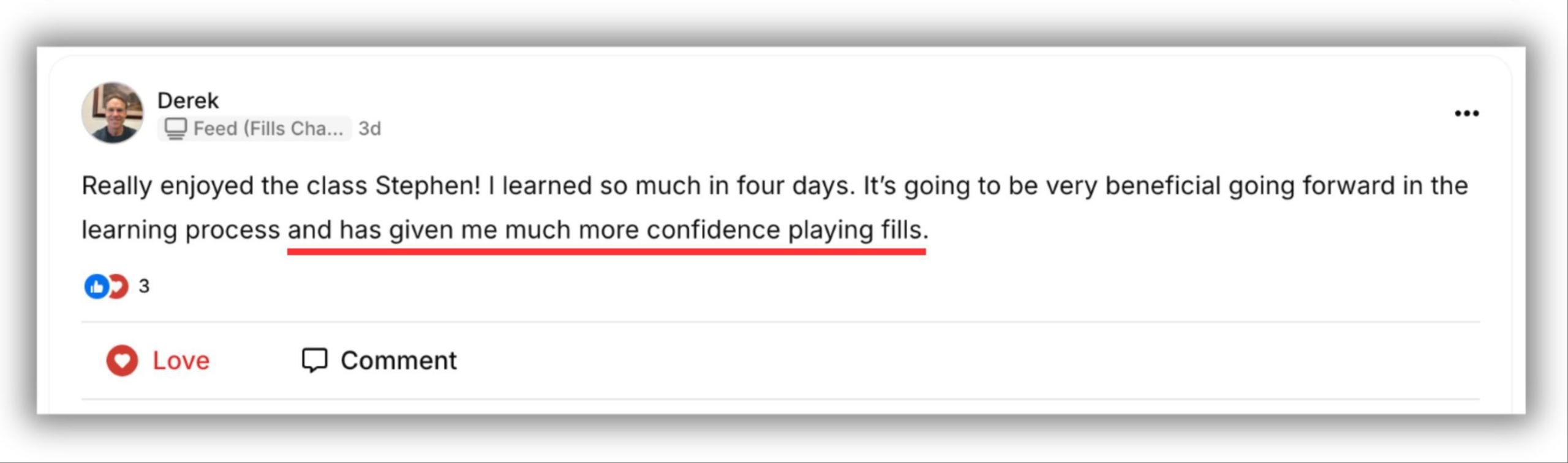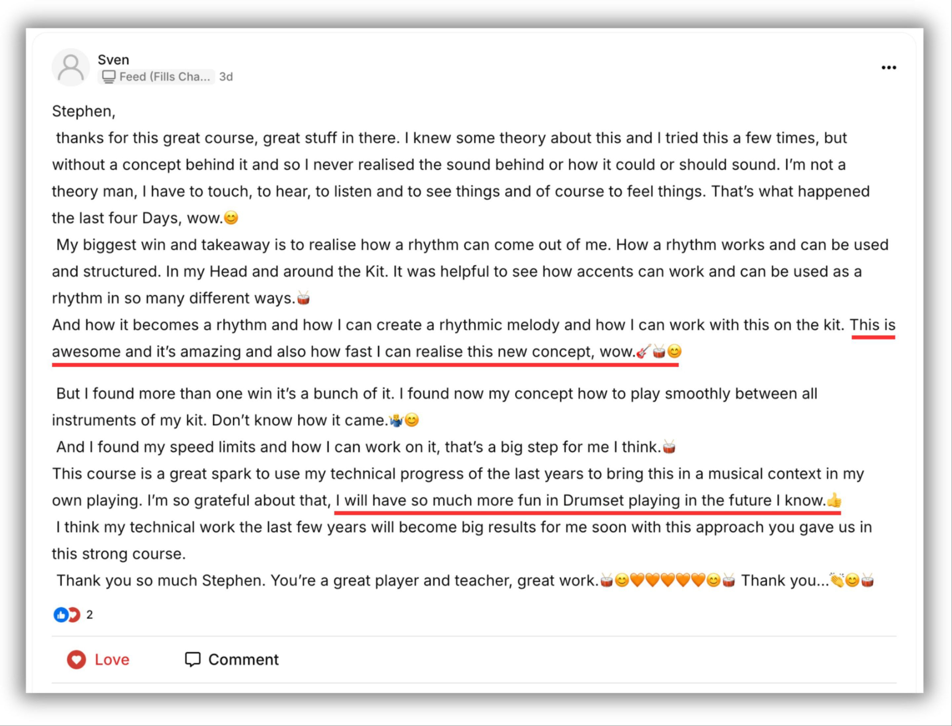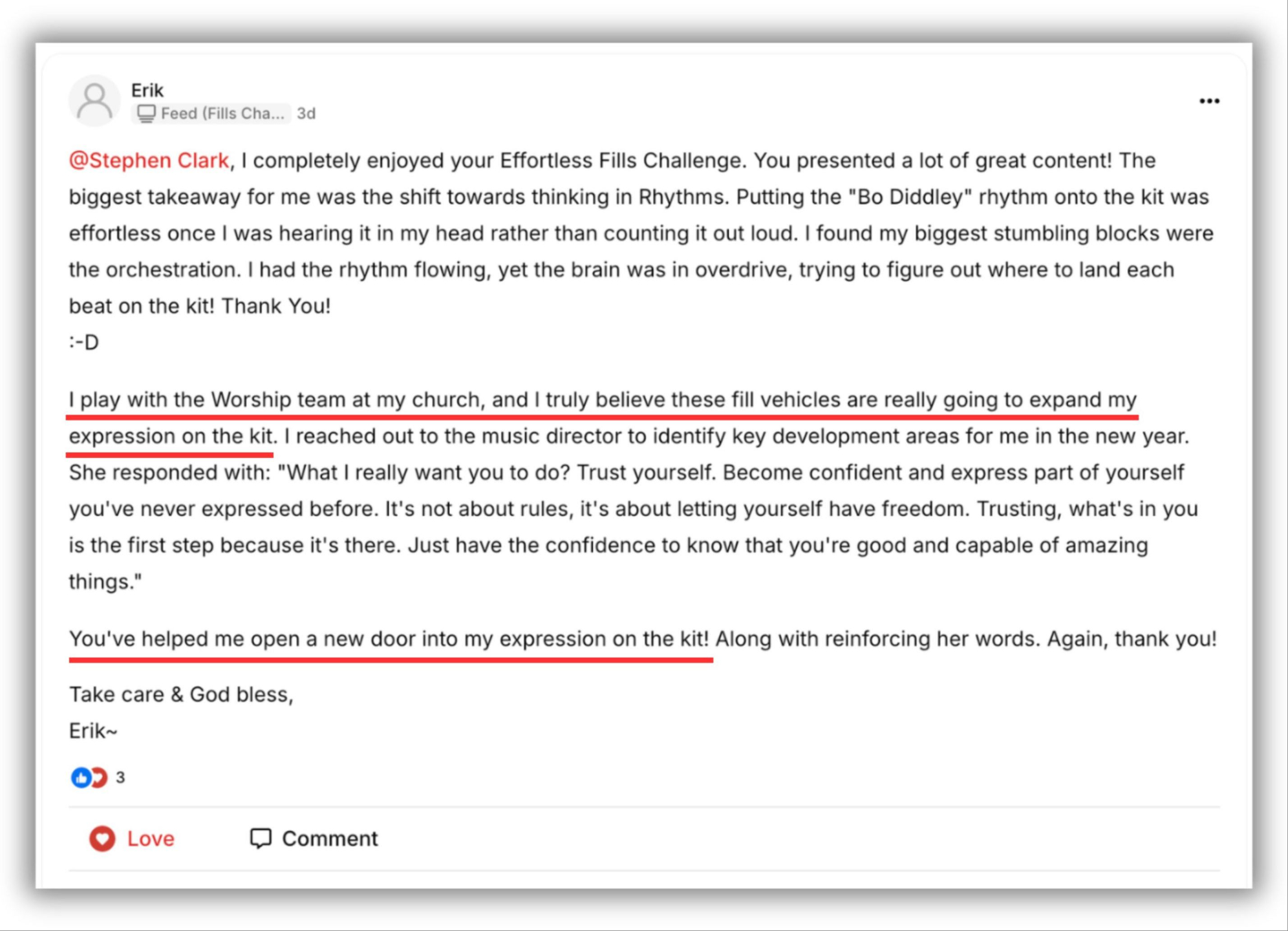 "[This] has given me much more confidence playing fills."