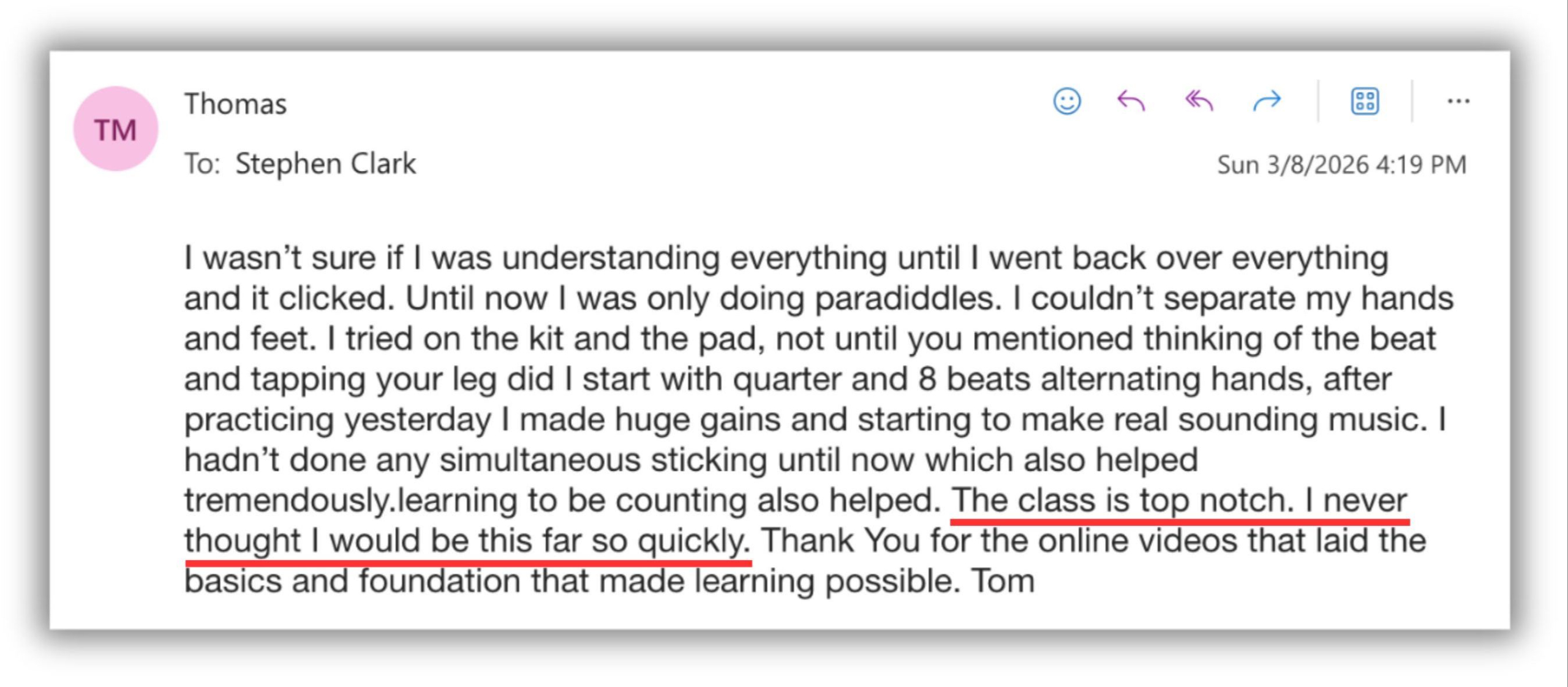 It's amazing what drummers like you are accomplishing in just 4 short days...